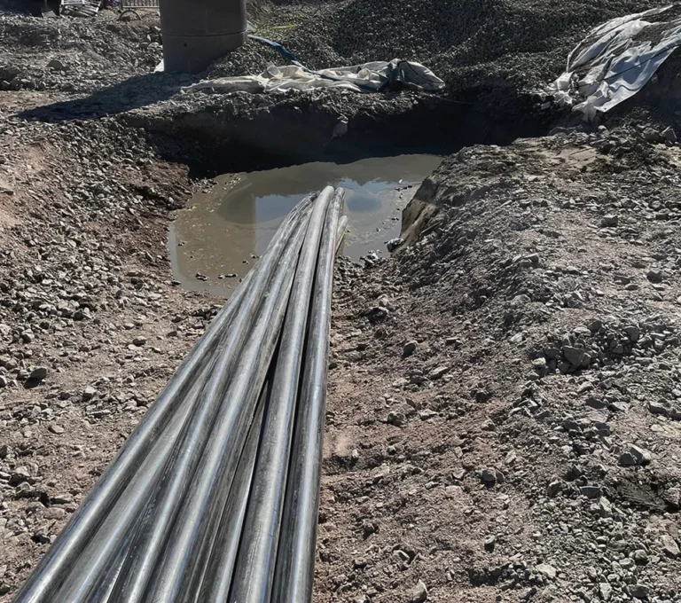 AT-borrning, eller ”All Terrain”-borrning, är lösningen när markförhållandena är svåra. Metoden använder ett dubbelt stångsystem: en inre stång som driver borrkronan och en yttre stång som styr riktningen. Detta gör att vi kan borra och styra exakt även genom massivt berg, grov morän och blandmaterial som skulle stoppa en vanlig styrd borrning.