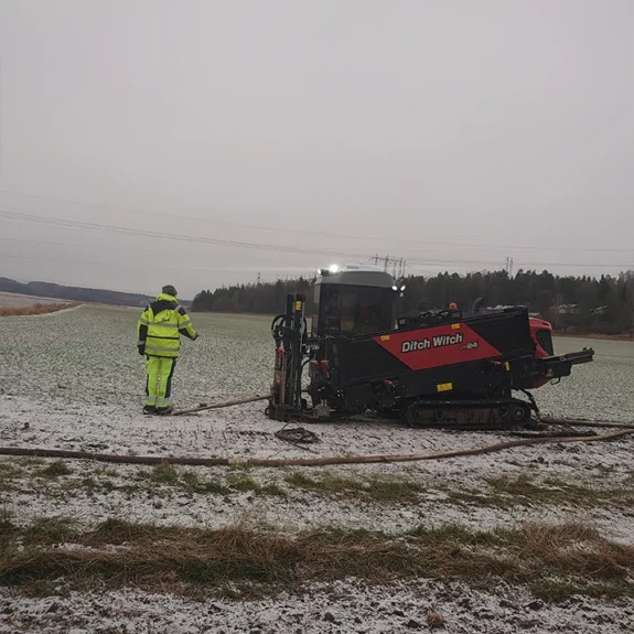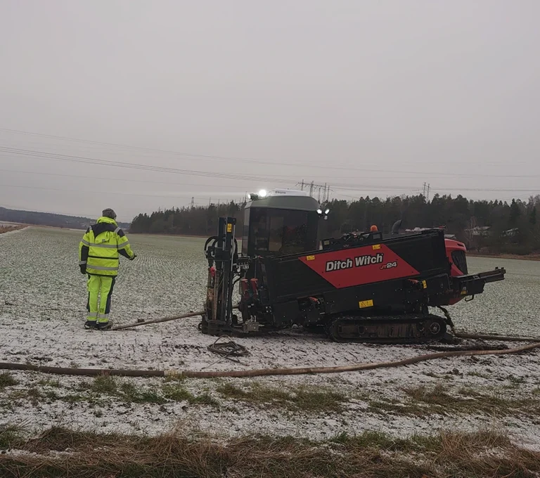 Genom att borra under marken lämnar vi ytan orörd. Trafik och vardagsliv kan fortgå precis som vanligt ovanför, samtidigt som vi installerar rören säkert under marken.