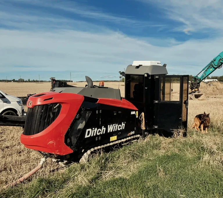 Vi använder moderna maskiner som är anpassade för olika projektstorlekar och markförhållanden. Maskinparken ger stabila installationer med hög noggrannhet och följer planerade linjer över längre sträckor.